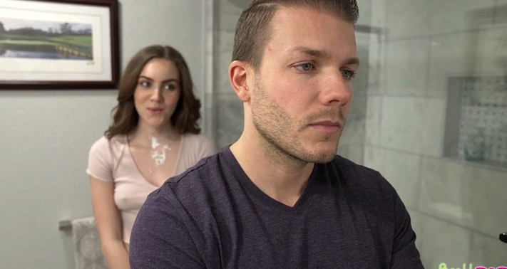 Il suo fratellastro eccitato che cerca di toccarle le tette
