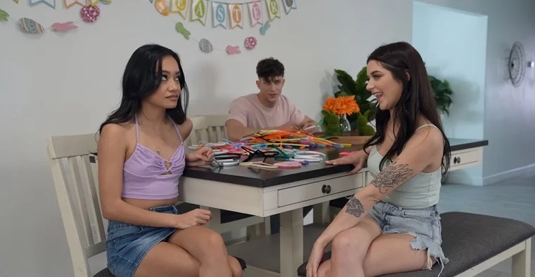 When Jojo offers to help Parker out with that big dick, he doesn't stop her. Putting his phone down, he watches as his hot teen stepsis takes his cock out to stroke and admire. When she has gotten her fill of licking and sucking, Jojo hikes up her miniskirt to move on to something even more pleasurable.